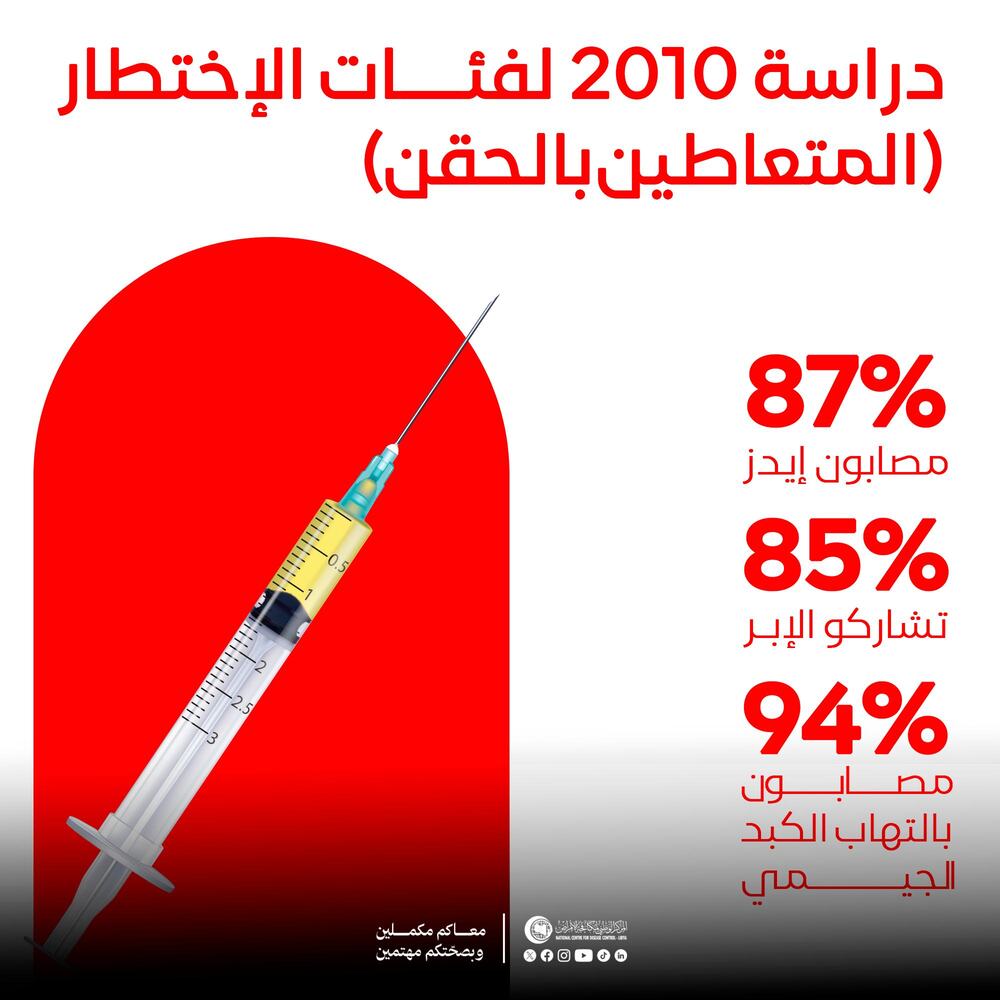 - رغم هذه المؤشرات، فإن نسبة الانتشار في عموم المجتمع الليبي تُقدَّر بأنها ما بين 0.1% إلى 0.3% فقط.