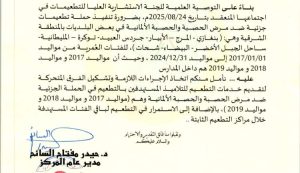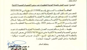 تعميم بشأن تمديد الحملة الجزئية للتطعيمات ضد مرضي ( الحصبة والحصبة الألمانية ) حتى تاريخ 29 / 7 / 2025. للبلديات ( غات - وادي ...